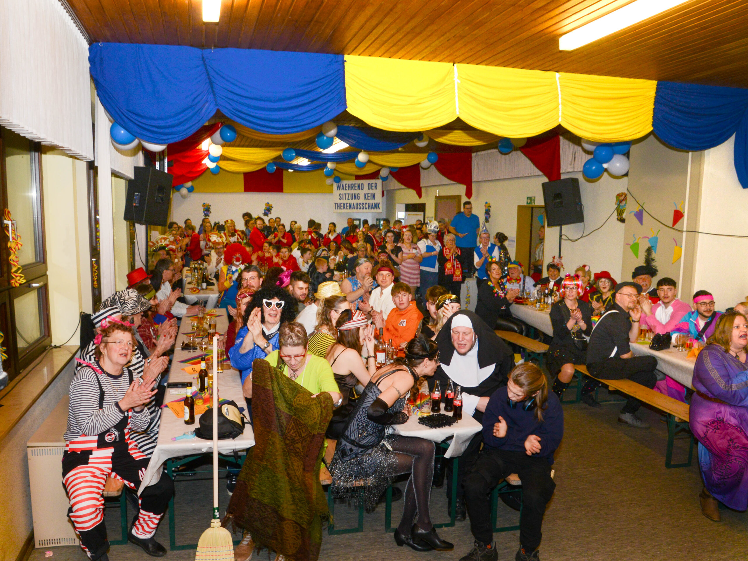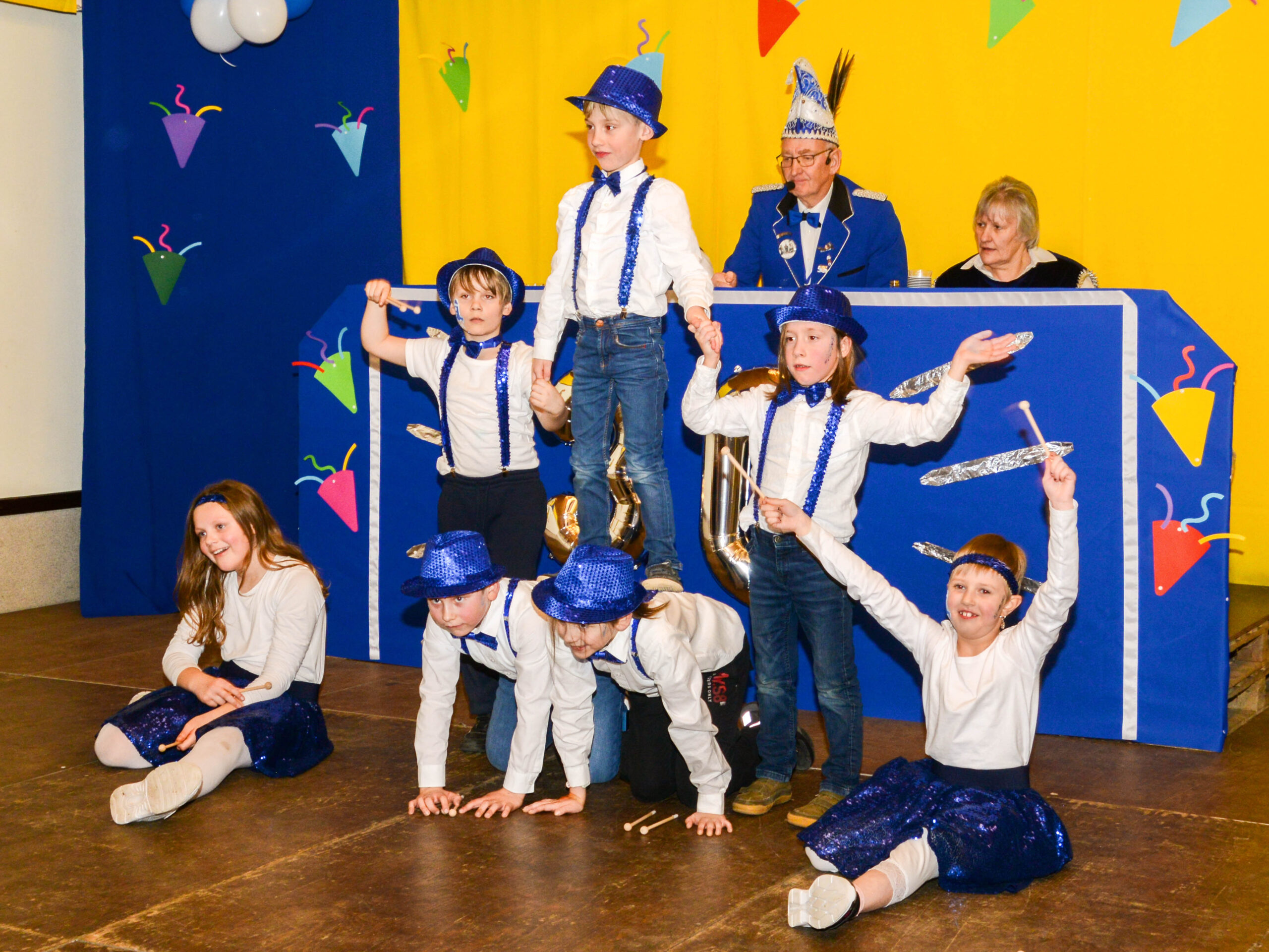 Den Anfang machte die Jugendtanzgruppe und “Adele und Adelchen”. Auch “Die Unikate” und die Schnapsdrosseln waren wieder Teil des Programms. Das Dou “Erich und Erika” war ebenfalls mit dabei. Als besonderes Highlight stand nach langjähriger Pause das Aremberger Männerballet wieder auf der Bühne. Die sechs Männer haben mit ihrem Tanz den Saal zum Beben gebracht!